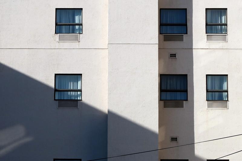 "Six Blue Curtains at the Marriott"