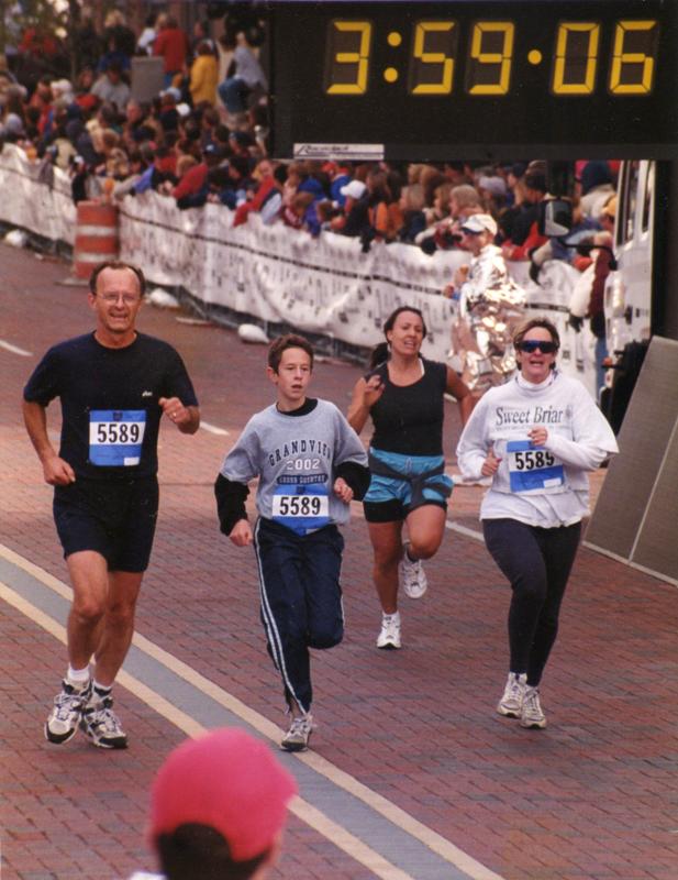 On Kev's 14th birthday he ran the first 10 miles, wife Cindy the 5K, and me the last half in the 2002 Columbus Marathon Relay. Credit Marathon Foto