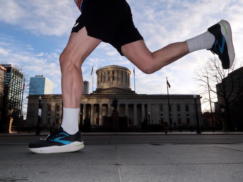 Forty-six degrees, perfect! Running by the Ohio Statehouse in 2023 on my annual Christmas morning five-mile-run.