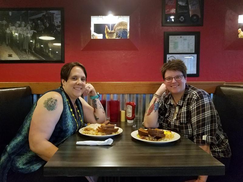 "Sisters Kimberly and Lynette, and Ruby the Chicken" The sisters were enjoying a weekend dinner (Ruby overhead was just watching). Great Falls, Montana