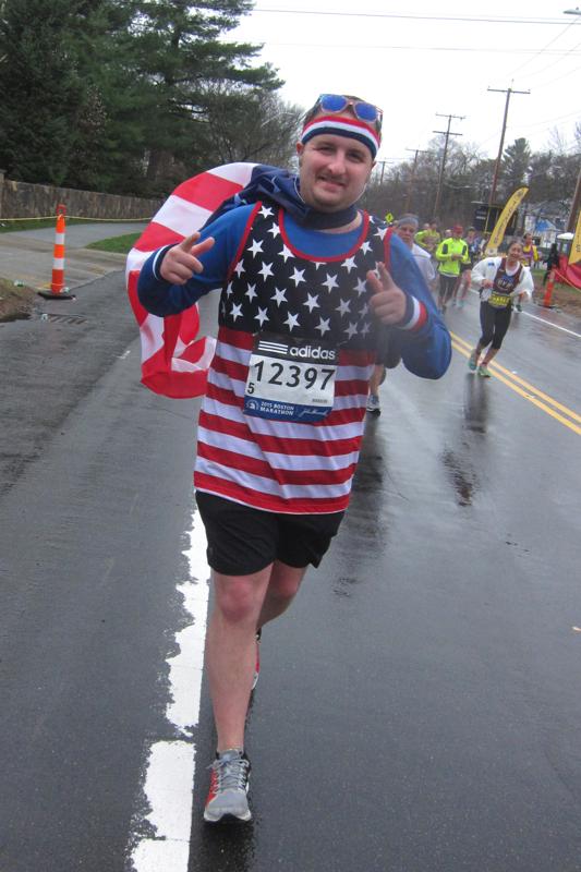 "Stars and Stripes" Boston Marathon runner William Simmons, who suggested/pleaded "twice," that he would stop for a picture. I wouldn't let him.