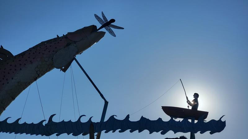 "Fisherman's Dream" or Nightmare! The salmon is 70' tall, on the Enchanted Highway Regent, North Dakota