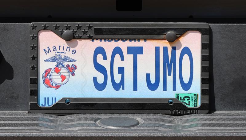 Messages of military service can pertain to where and when, the job, even a military member's heritage, or, like this plate, I believe, to a specific veteran and their rank, seen in St. Louis, Missouri. There are others of this nature that I've found in my travels: ABNSGT in Virginia, E4MFA (E-4 a military rank) in West Virginia, CWOJO (CWO meaning Chief Warrant Officer) on display inside the Catfish Corner Restaurant in Aardmore, Oklahoma, and two from Ohio, RJLCOL (that message on a COMBAT VETERAN plate featuring a Silver Star) and COLHAM, one might assume, both plates owned by Colonels during their military service.