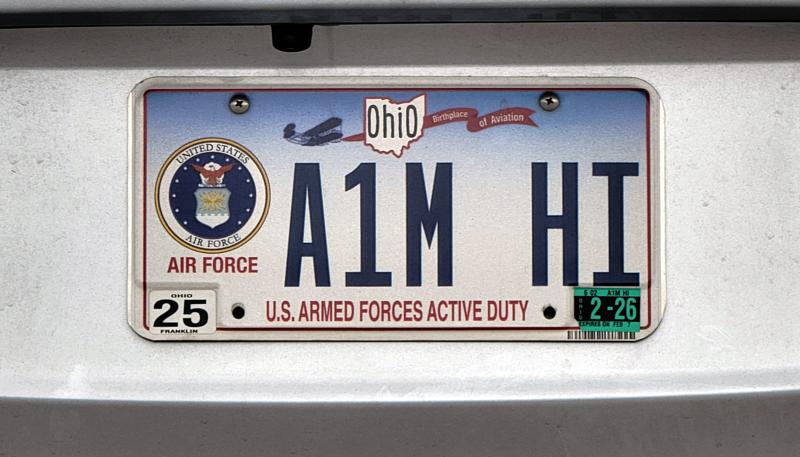 "Aim High" was the USAF's slogan from 1984 through 2000, replaced by "No One Comes Close," then "Cross into the Blue" and "Above All." Today, it's "Aim High - Fly, Fight, Win," this version seen in Columbus, Ohio.