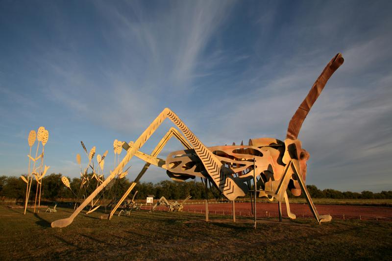 "Grasshoppers Delight," the huge one 40' tall and 50' long, on North Dakota's Enchanted Highway.