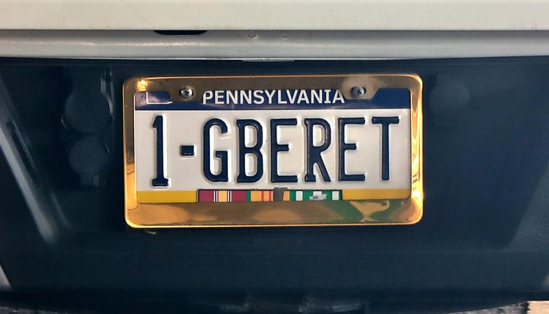 At an earlier time in their lives, many veterans assumed a new identity. It became who they were. Later, for the fortunate, it remains, always a part of them, sometimes rendered as a simple message shared on a vehicle license tag. Today, we hear about Seal Team Six, but five decades ago, and today, it was the Green Berets. Known by their distinctive headgear, they are officially known as the US Army Special Forces, an elite unit specializing in unconventional warfare, counter terrorism and special reconnaissance, often working closely with foreign forces. The three colored emblems on this veteran's license represent the National Defense, Vietnam Service and Unit Commendation Metals.