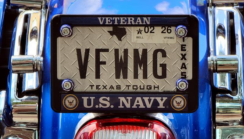 From somewhere in the background, the term “knuckle-dragger” was volunteered. Those words were aimed at Thomas “Bear” Anderson, after my question, "What did you do during your years in the Navy?" From 1992-1994, Bear had been a machinist's mate, who labored (as a knuckle-dragger) in the Reactor Division aboard CVN-72, the USS Abraham Lincoln. Among his other interests, today he leads the Texas VFW Motorcycle Group, thus his license plate. Their purpose is to promote a positive image of the VFW, encourage motorcycling safety programs and motorcycling in general. Of more significance, he also serves as treasurer of Operation Daily Battle, an organization that focuses on veterans' suicide prevention.