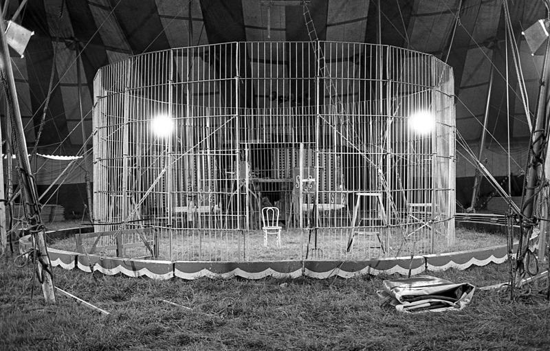 When the lions were in the show, just beyond view, was a man with a high powered revolver.