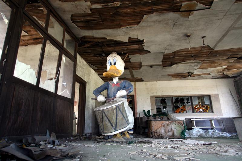 "Drummin' Donald in limbo," spotted through a broken window in rural western Ohio.