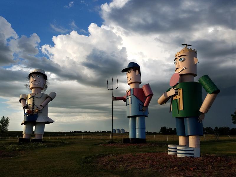 "The Tin Family," by Gary Greff, found on The Enchanted Highway just north of Regent, North Dakota. The Tin Dad is held up by 16 telephone poles, Tin Mom by 12! Her hair is made from barbed wire, crazy for cuddling.