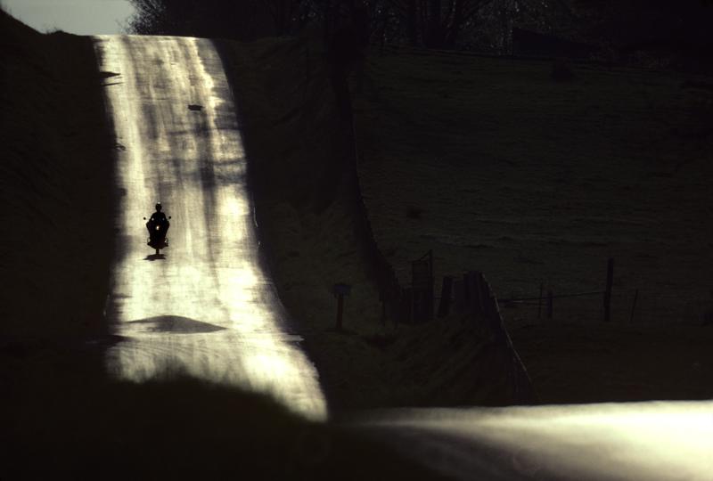 Ken on his old '72 Honda 750, decades ago, a nifty silhouette riding near Mt. Vernon, Ohio.