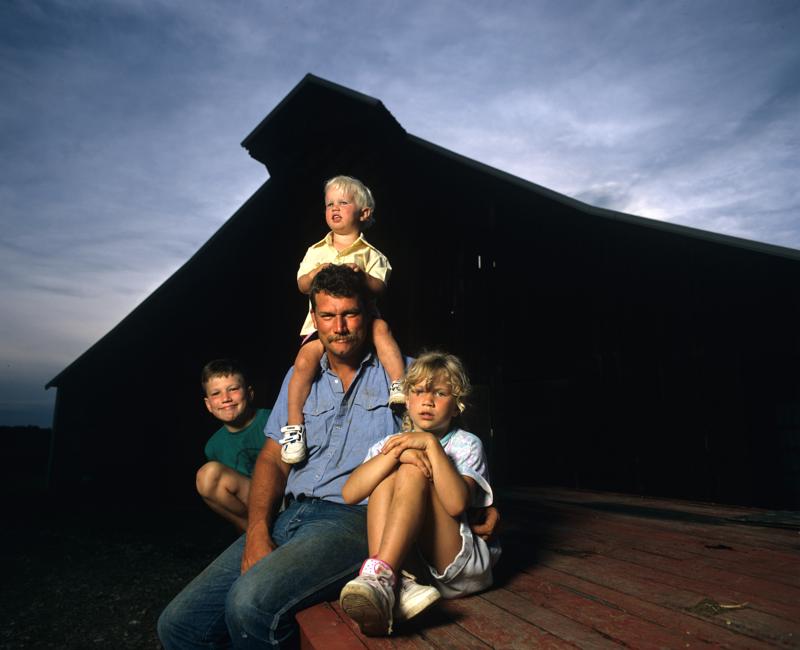 Farmer Champ Henson, once a star Ohio State University football team fullback, with his kids.