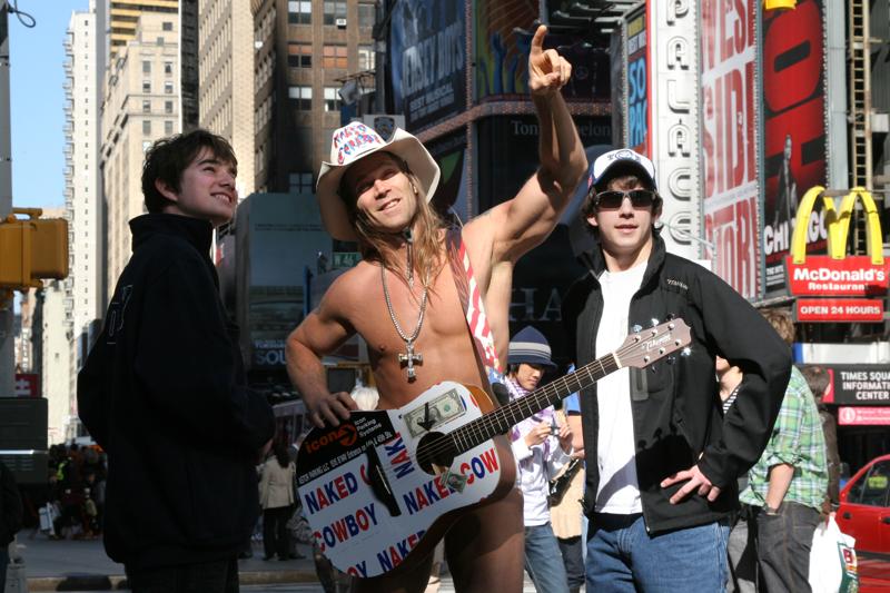 "The Naked Cowboy" (he wasn't really naked) in New York City's Times Square.