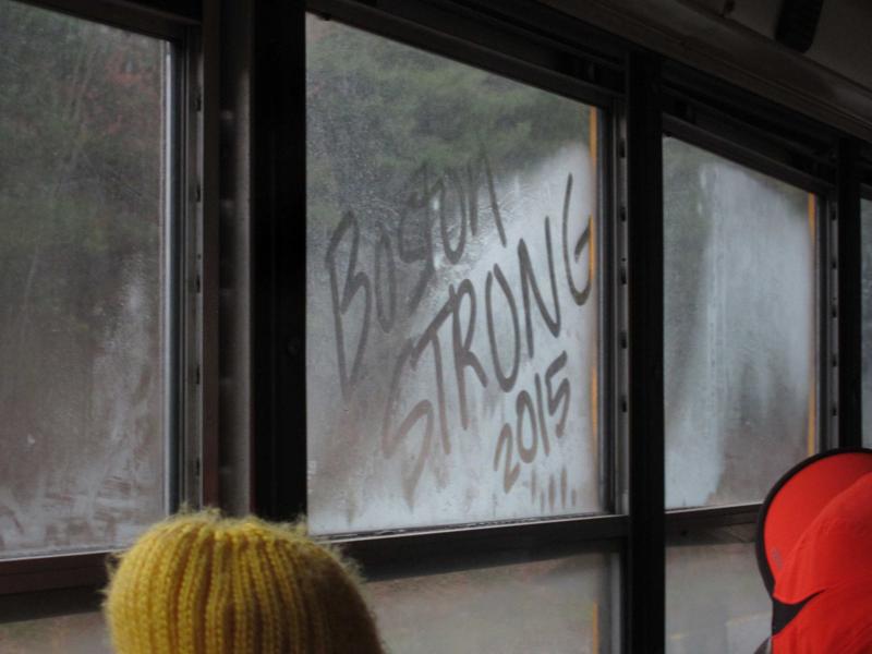 "Boston Strong" On the bus to Hopkinton for the 2018 Boston Marathon, three years after the bombing.