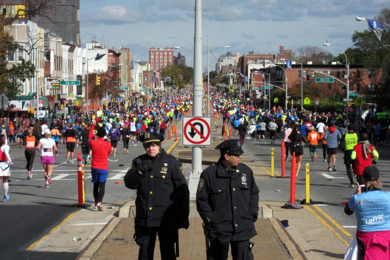 There are "No U-Turns Permitted" in Brooklyn during my 2014 New York City Marathon.