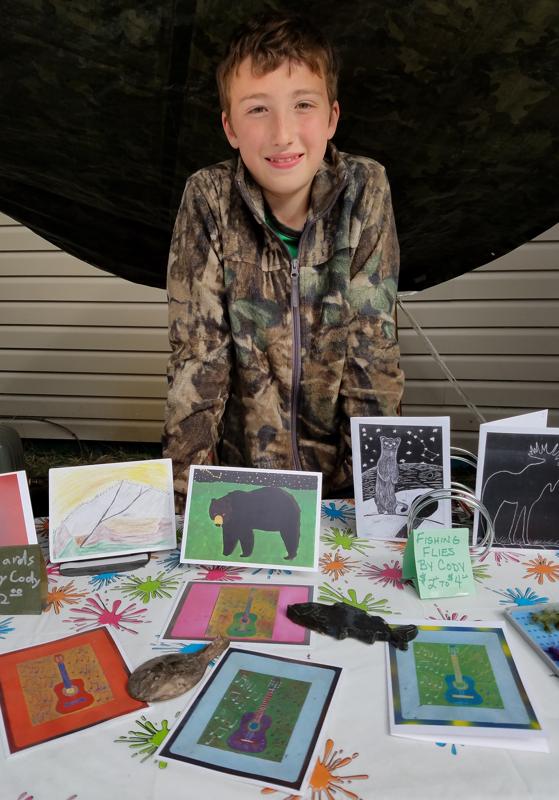 Cody Bryden, 13, selling his art work at the Moose Pass Summer Solstice Festival.