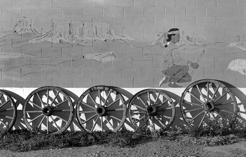 The mural, over many years slowly fading away, was found on US 160 south of Cortez, Colorado.
