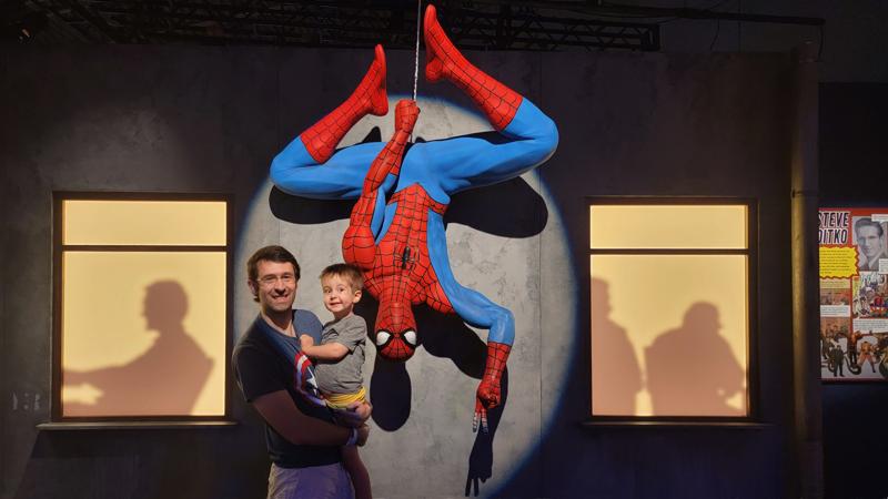 Son Kevin and grandson Charlie, hanging with Spider-Man at COSI. Columbus, Ohio