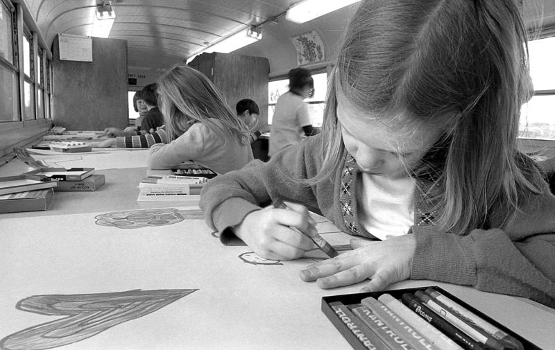 One of the Hughes twins on the Coolville Elementary School Art Bus.
