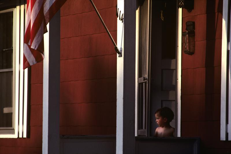 Red cheeks, red siding, and the red, white and blue. Young Jason Gerencser, who long ago lived in Newark, Ohio.