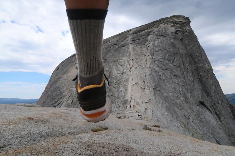 High stepping, about to climb the Yosemite National Park Half Dome cables, an almost unimaginable thrill.