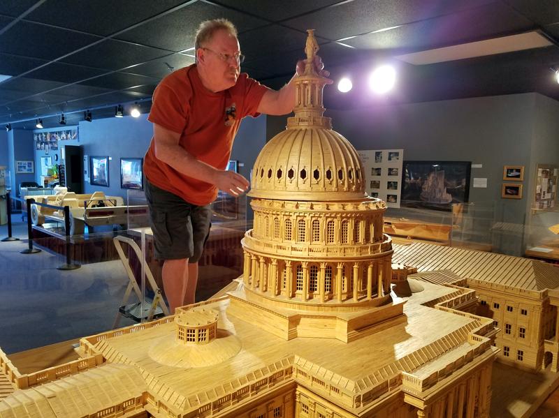 Artist Patrick Acton in his Gladbrook, Iowa Matchstick Marvels Museum. "Ripleys Believe It or Not" displays his work worldwide.
